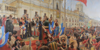 También le eché algunos cientos de pesos a la tarjetabip! en entretenidas lecturas al ritmo del traqueteo del vagón de metro desde y hacia “lo vial” cobijando entre las manos alguno de los libros recomendados. Entre ellos, en el tercero de la serie “Historia secreta de Chile” de Jorge Baradit, me encontré un capítulo titulado “¿Esclavos africanos pelearon en la Independencia de Chile?” en el que menciona, en algún momento, un par de pinturas que retratan momentos de batallas chilenas. En ambas, observa, se muestran soldados africanos combatiendo del lado independentista chileno.